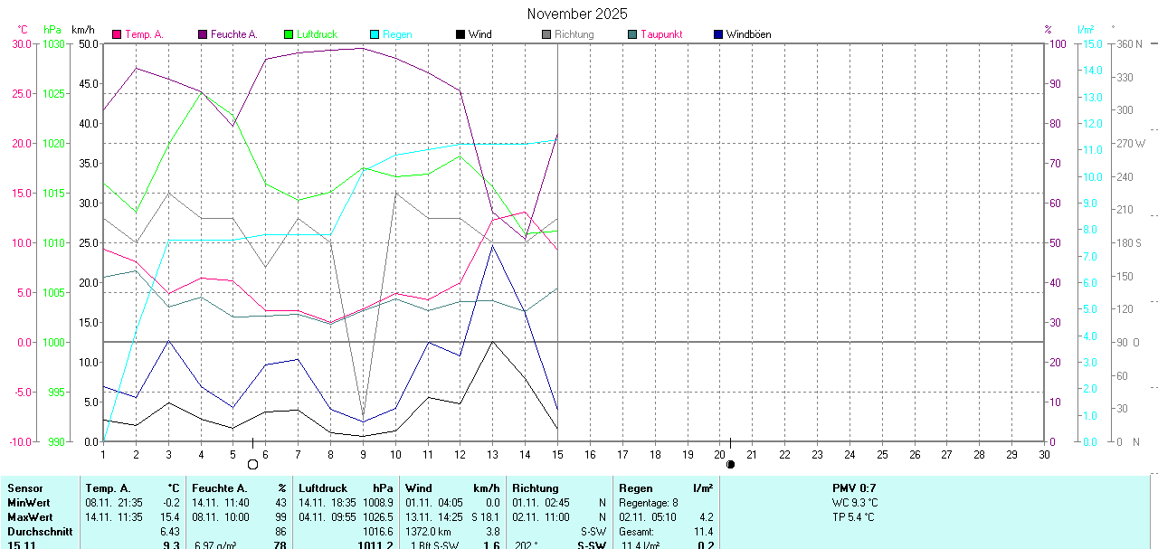 aktuell 11,3 km/h (2 Bft) |